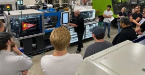 “We load a bogus program that has all critical values set to zero or whatever the minimum value is. They work through first setting up the clamp, then running short shots, and finally progressing to a full part with some process optimization. At the end of the semester they complete a lab final, which is a two-hour individual test where they have to setup a process from scratch and answer questions along the way. Through the semester, the students also learn how to do mold changes, matching molds to machines, basic troubleshooting, identify machine safeties, actuators, and position indicators. As you can imagine, this is a lot of information for the students to digest, and we are very proud of how far they progress in just one semester.”